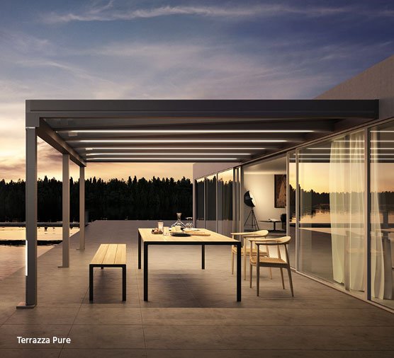 - 10% discount on your glass patio roof Terrazza Pure, Terrazza Sempra or Terrazza Originale or your pergola awning Plaza Viva including light bars, hand transmitter and remote receiver