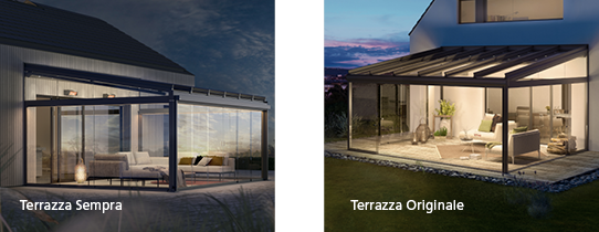 Create a place for very special moments on your patio – for a breather, togetherness and wellbeing. Beneath the glass-patio roofs Terrazza Pure, Terrazza Sempra and Terrazza Originale, you enjoy the calming feeling of protection and security and experience equally the openness of being outdoors.