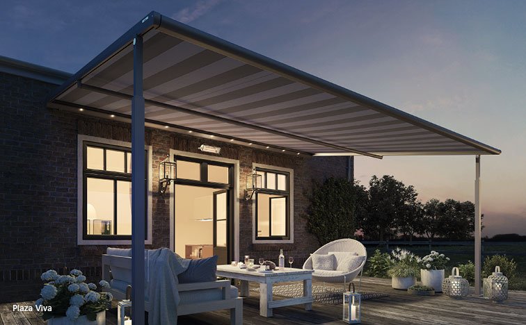 Now 10 % discount on a patio roof or Plaza Viva with remote-controlled lighting – for carefree time outdoors, which doesn’t end when the sun sets.